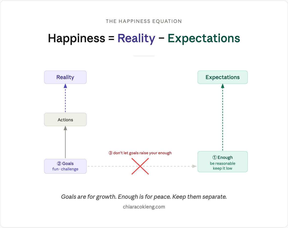 The trick is keeping these two things separate. You can have a goal to push yourself and a baseline of "enough" that stays fixed. The mistake is letting your goals creep up what enough means to you.