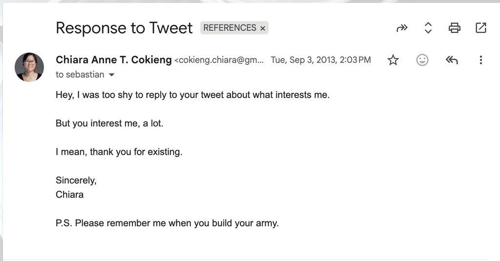 Around the same time, I sent what is possibly the most cringe email of my life.