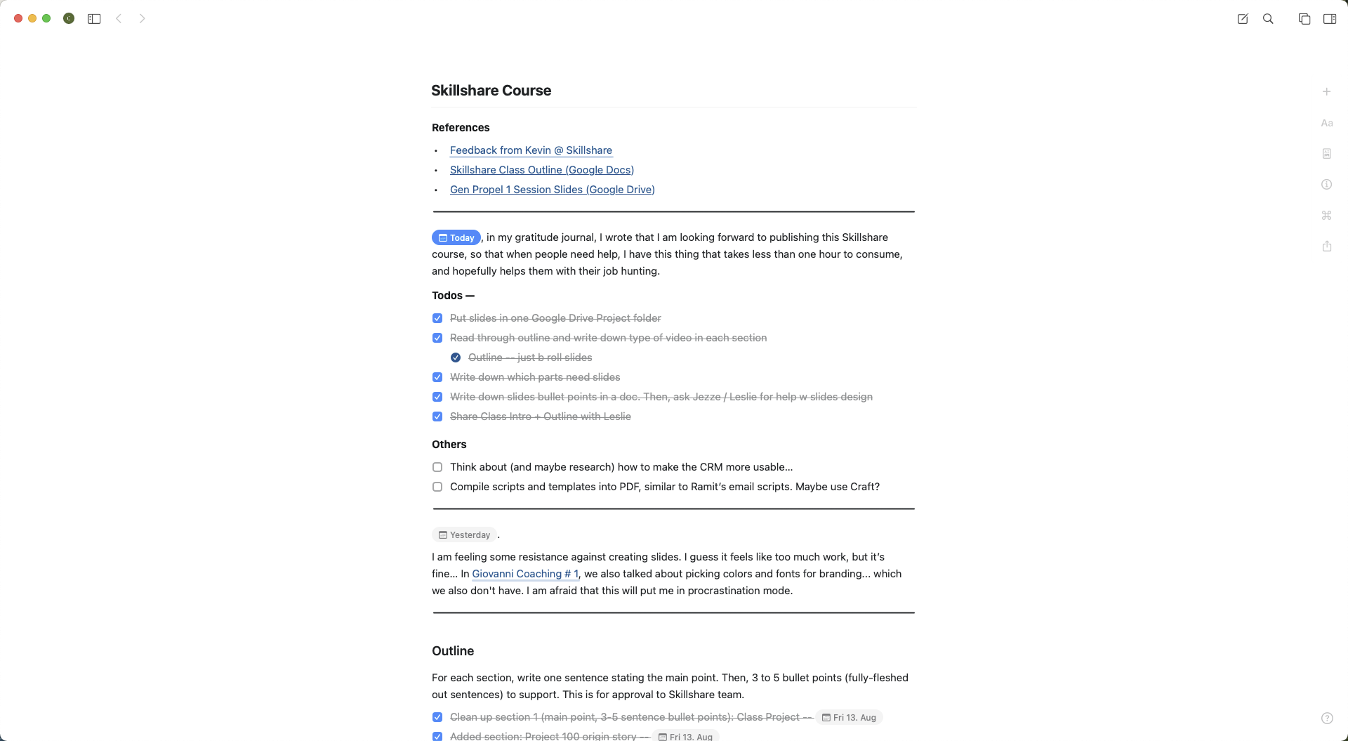 One week ago, I tweeted about experimenting with using Craft Docs to drive my projects forward.