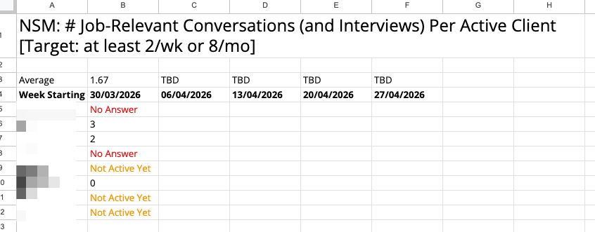 Restarted Weekly Accountability Threads in my community and FINALLY tracking the # job-relevant conversations per active client.