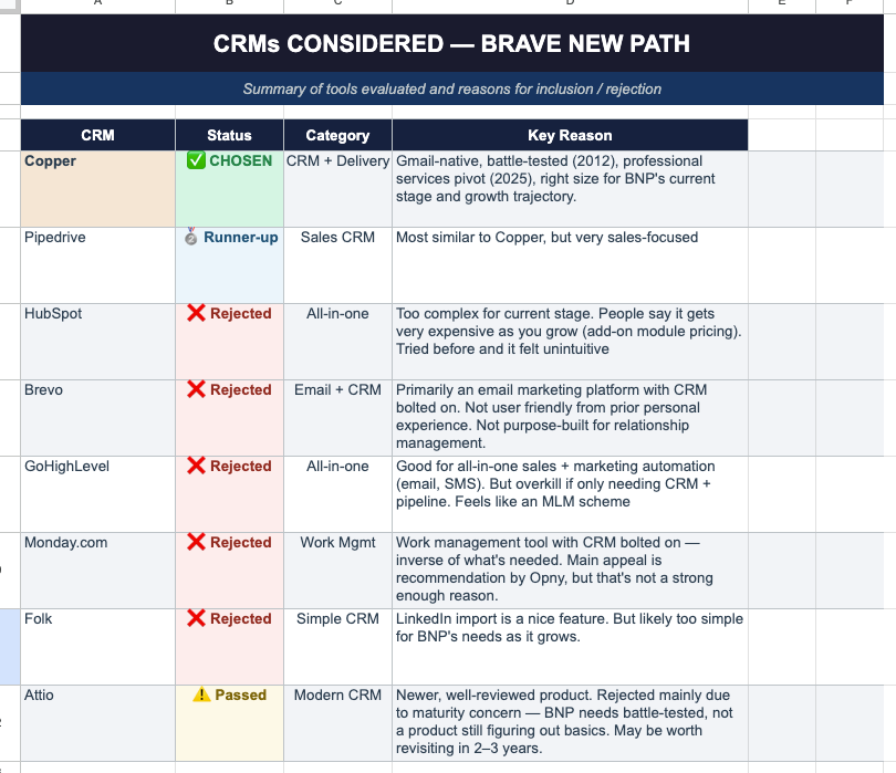 Reviewed my tech stack. I’m probably going to invest in a CRM, most likely Copper.
